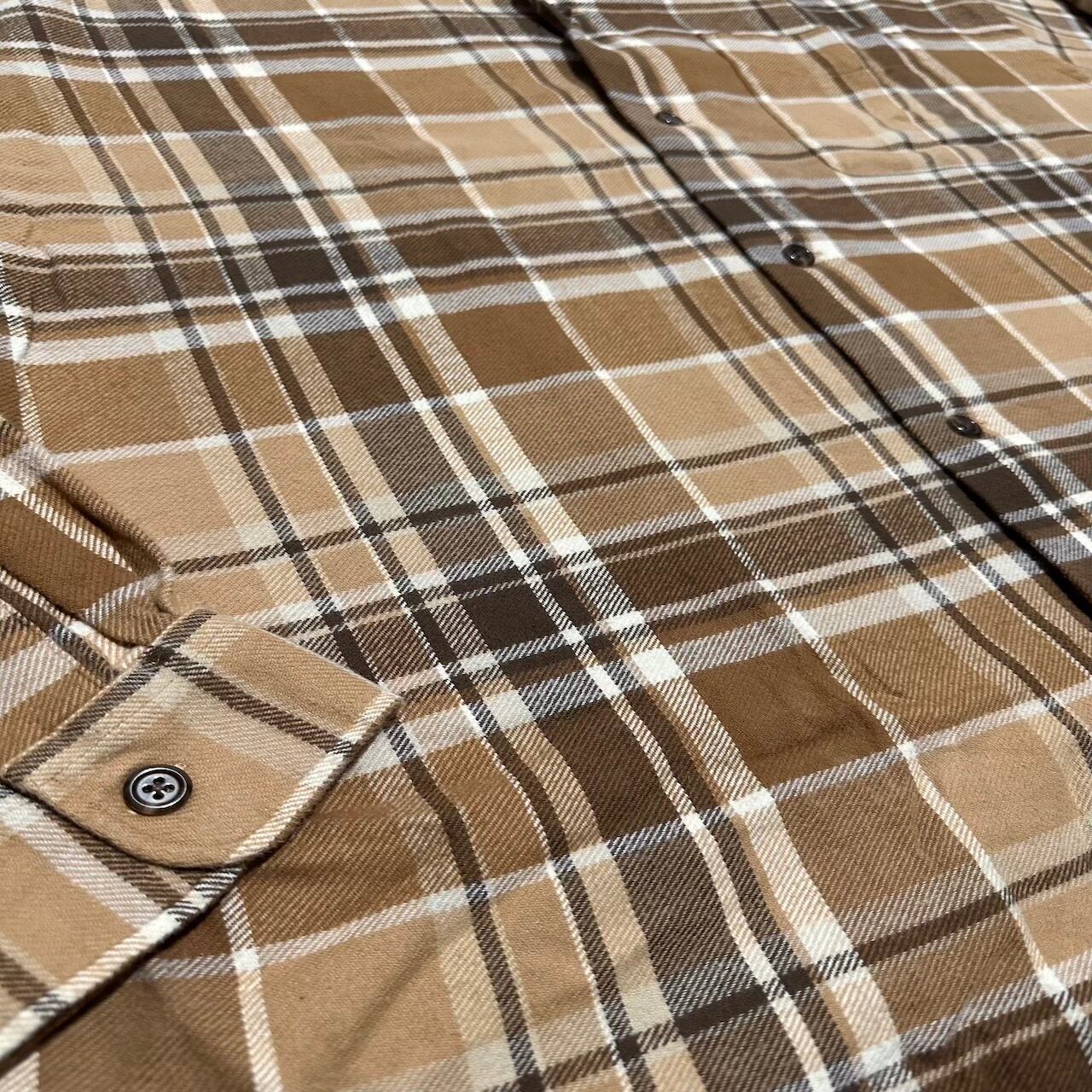 ブラウンとベージュカラーの上品なチェックシャツです